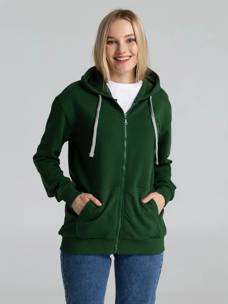Толстовка с капюшоном на молнии Unit Siverga Heavy, темно-зеленая, размер S
