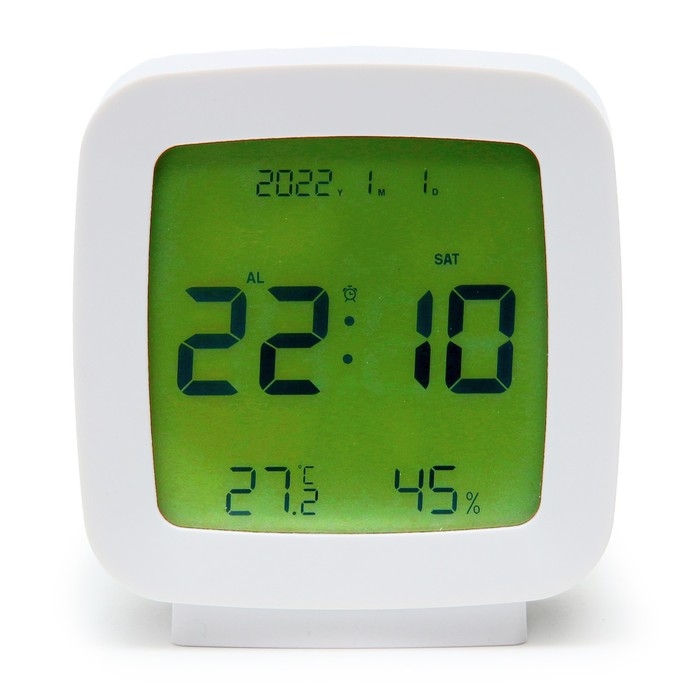 Часы - будильник электронные настольные: термометр, календарь, гигрометр, 7.8 х 8.3 см