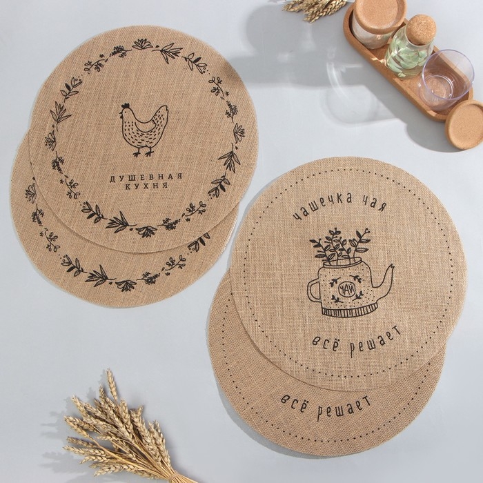 Набор салфеток Этель "Душевная кухня"- 4шт. d38, джут