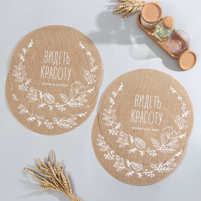 Набор салфеток Этель "Видеть красоту"- 4шт. d38, джут