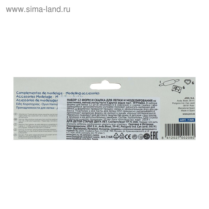Набор для моделирования детский JOVI, 12 формочек и скалка, ДЛЯ МАЛЫШЕЙ