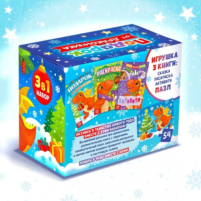 Набор 3 в 1 «Подарок от Дракончика», 3 книги, игрушка, пазл