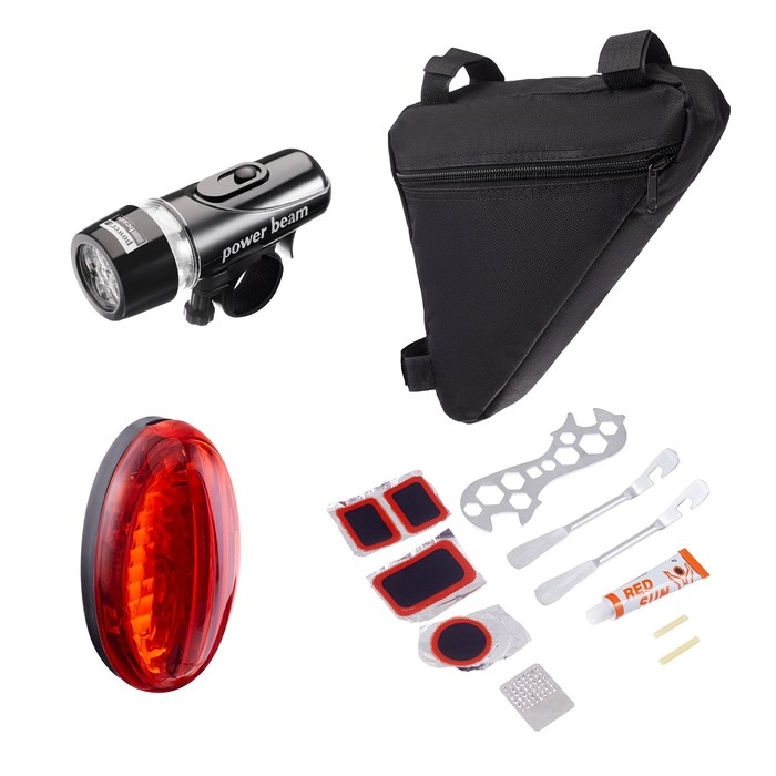 Набор для велосипеда 3 в 1: фонарь, ремонтный набор, сумка 20 х 20 х 27 см