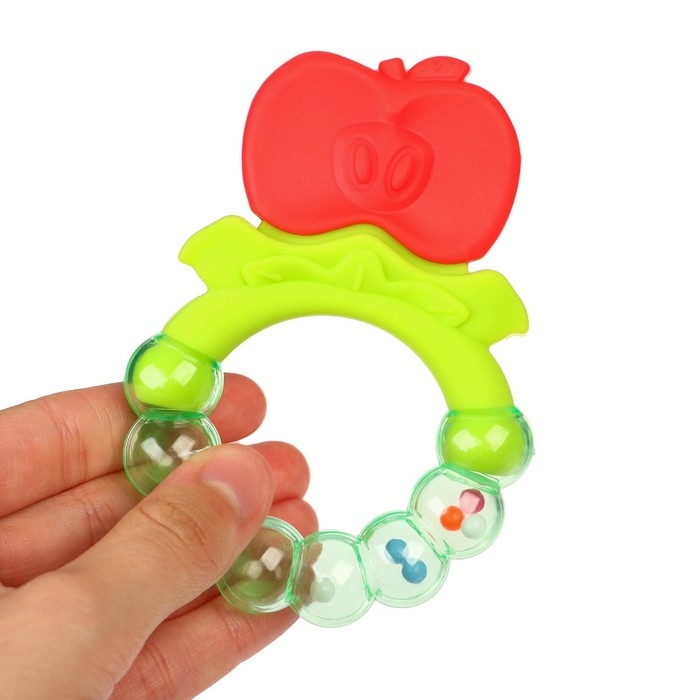 Форма ручки и размеры разработаны специально для детской ладони, поэтому малышу будет удобно её держать. Рельефная структура на поверхности изделия и его дополнительных элементов будет способствовать развитию мелкой моторики и помогут массажировать десна малыша, а яркие цвета — будут способствовать формированию визуального восприятия мира. Погремушка в прорезывателях поможет привлечь внимание малыша и будет способствует развитию слухового восприятия.