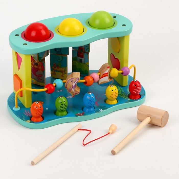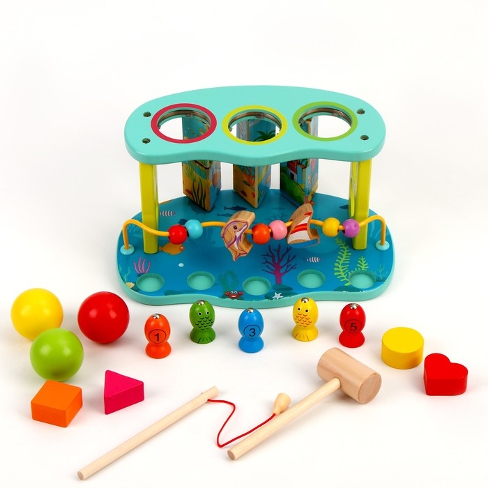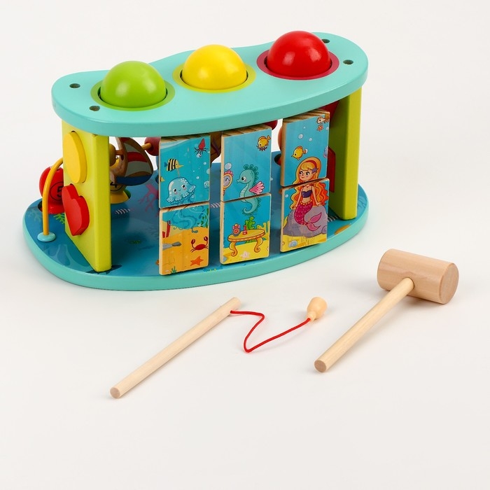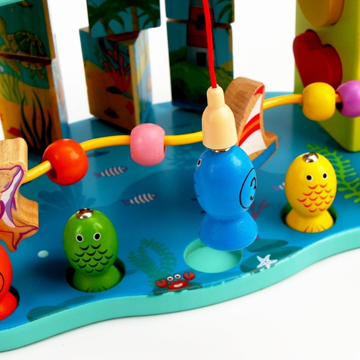 Логический центр 3 в 1 Стучалка + Рыбалка + Серпантинка «Море» 16 × 26 × 13,5 см