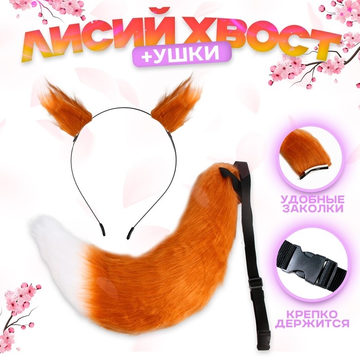 Карнавальный набор «Лиса аниме», рыжий, 2 предмета: хвост, ушки