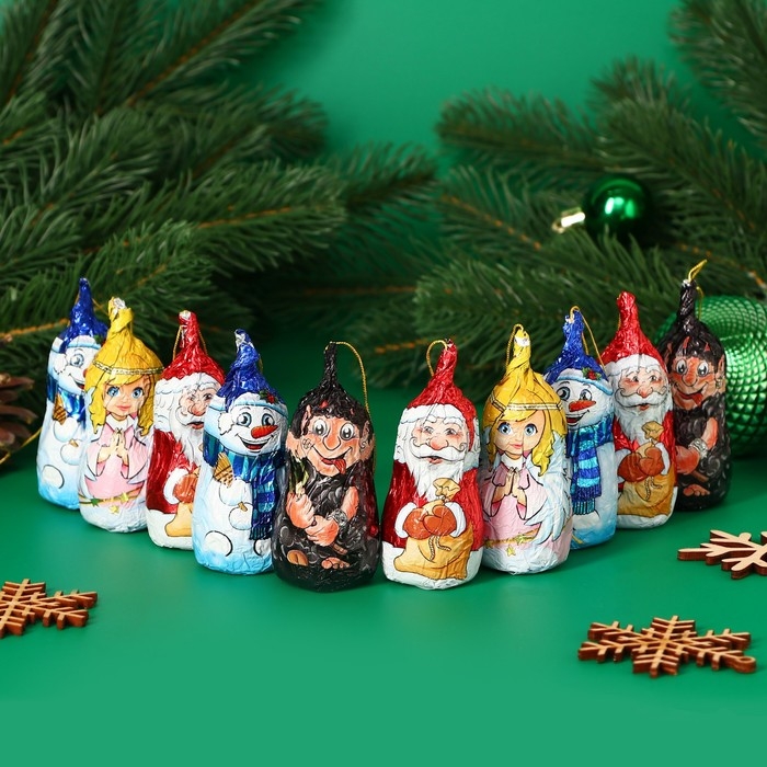 Набор новогодних кондитерских изделий станет прекрасным и оригинальным подарком для Вас и Ваших детей, близких родственников, друзей и коллег! Новогодний шоколад в виде Деда Мороза и других йлочных игрушек порадует получателя нежным вкусом и креативным оформлением. Это популярный и любимый всеми продукт, который идеально подойдет в качестве презента для всех категорий людей любых возрастов. Съедобные новогодние игрушки станут прекрасным дополнением к подарку или же самостоятельным презентом к таким любимым всеми праздникам, как Новый год и Рождество. Вручите его как комплимент в суете Новогодних будней и порадуйте любимых людей.