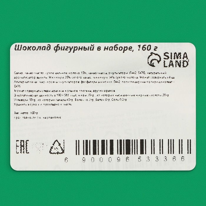 Шоколад фигурный в наборе, 160 г