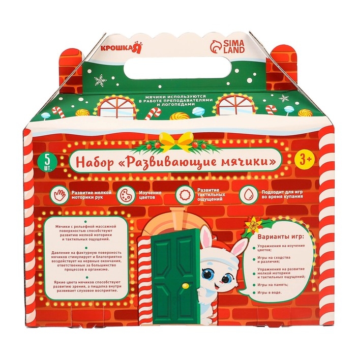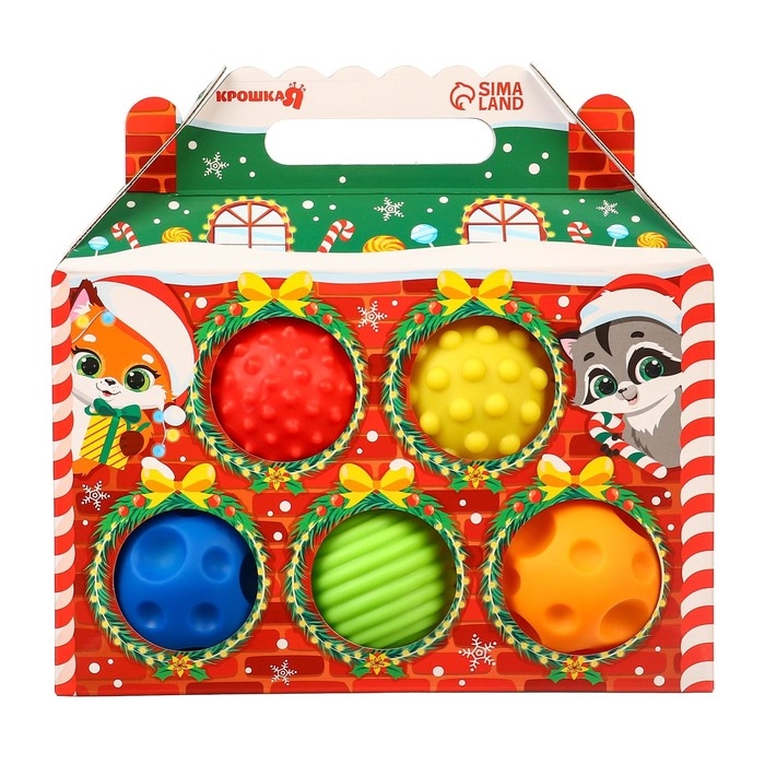 Подарочный набор развивающих тактильных мячиков «Праздничный домик», 5 шт., новогодняя упаковка, Крошка Я