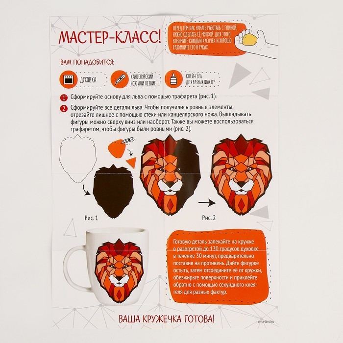 Набор для декора кружки полимерной глиной. Лепка на кружке «Полигональный лев»