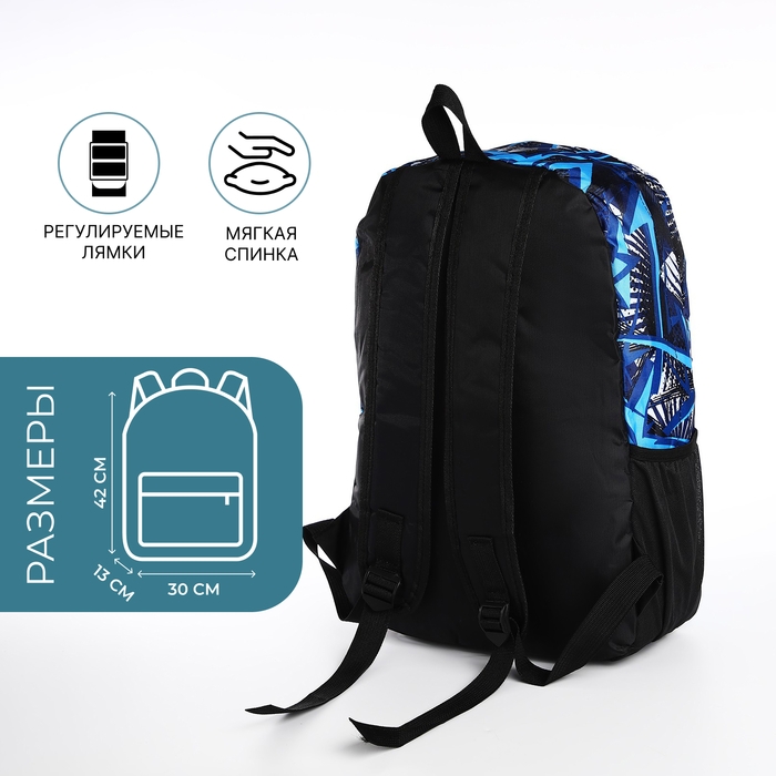 Рюкзак школьный из текстиля на молнии, 3 кармана, цвет синий