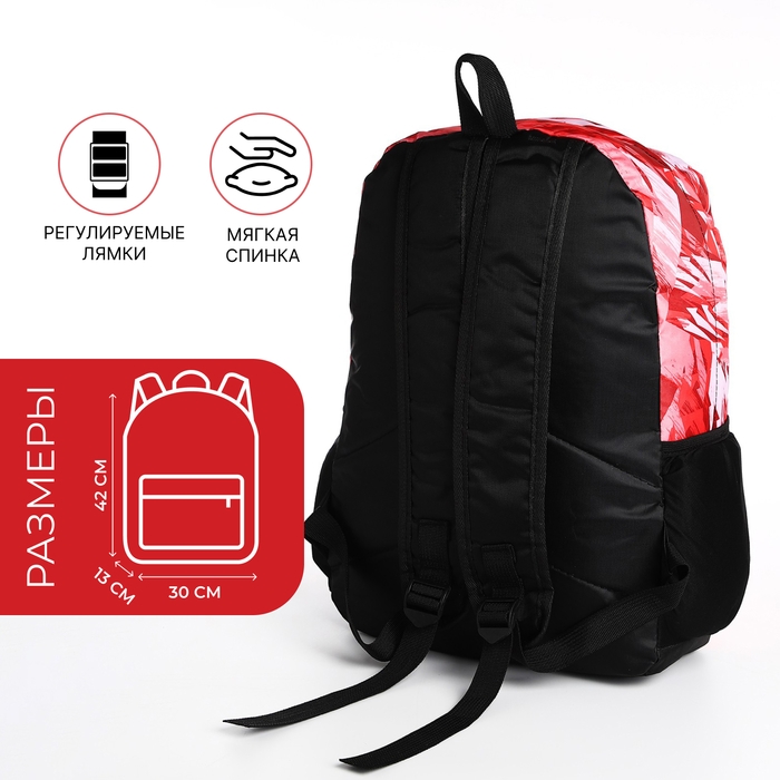 Рюкзак школьный из текстиля на молнии, 3 кармана, красный