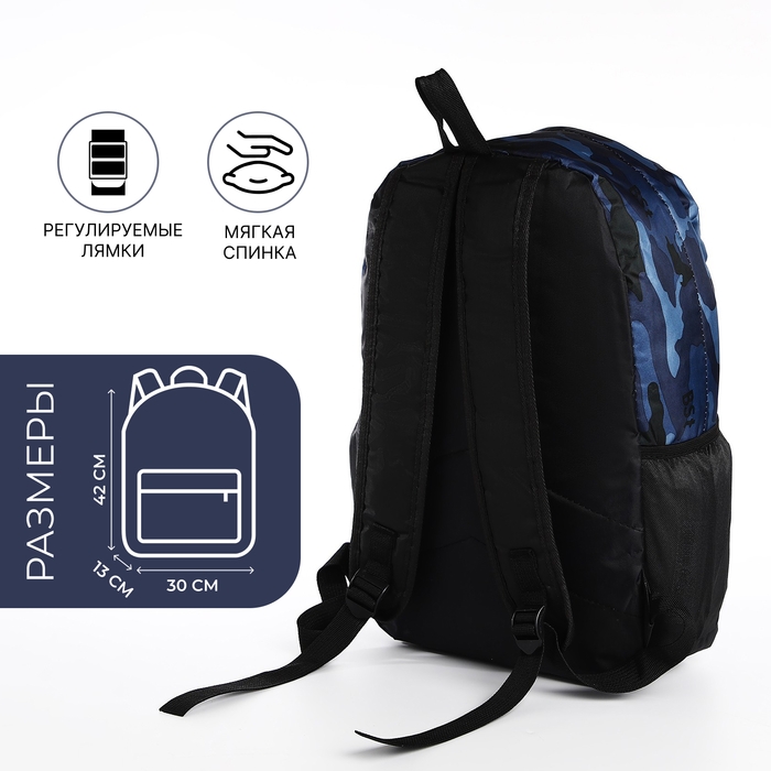 Рюкзак школьный из текстиля, 3 кармана, цвет синий