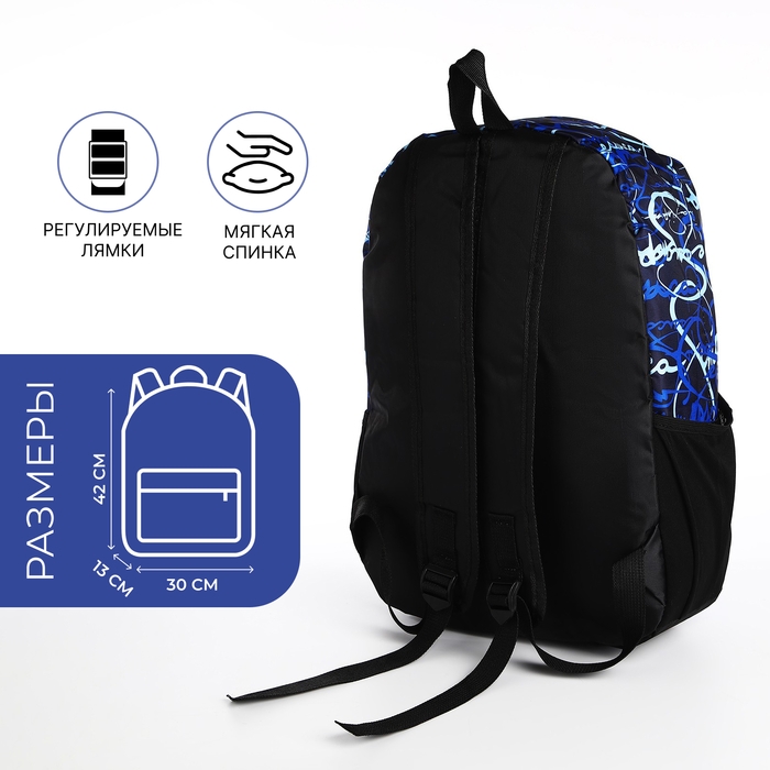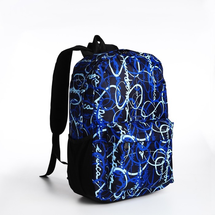 Рюкзак школьный из текстиля на молнии, 3 кармана, цвет синий