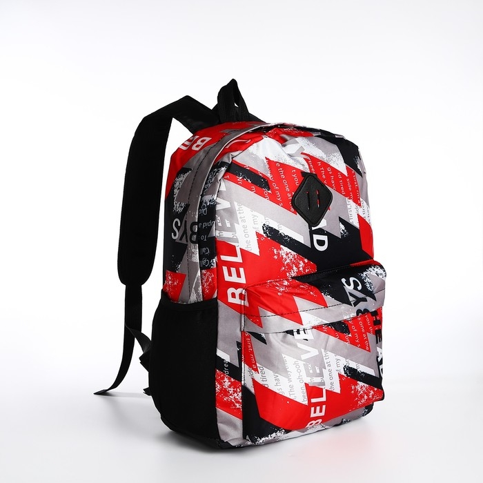 Рюкзак школьный из текстиля на молнии, 3 кармана, цвет красный
