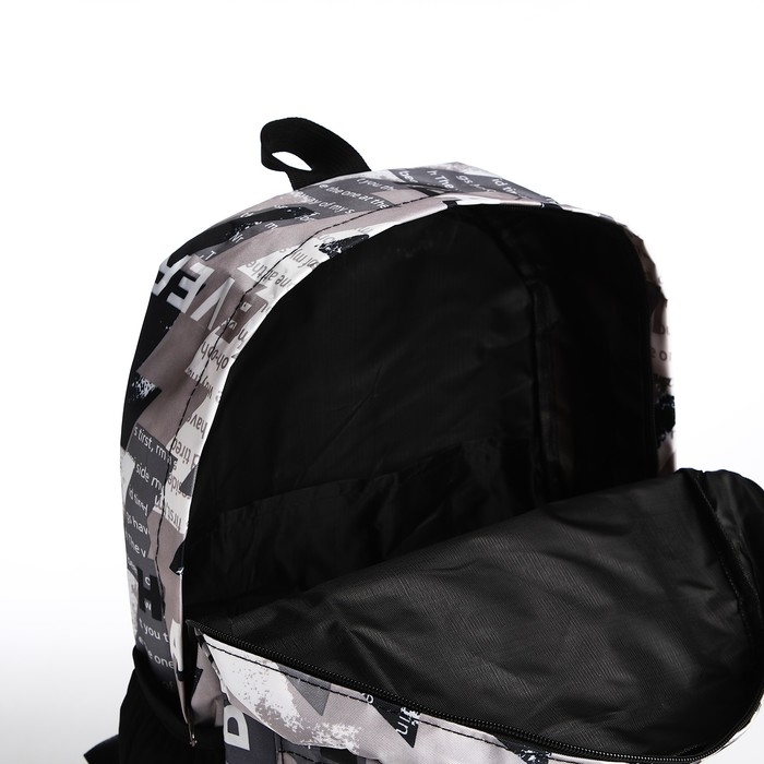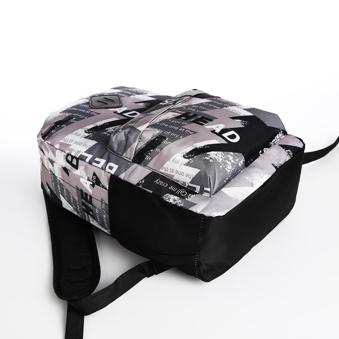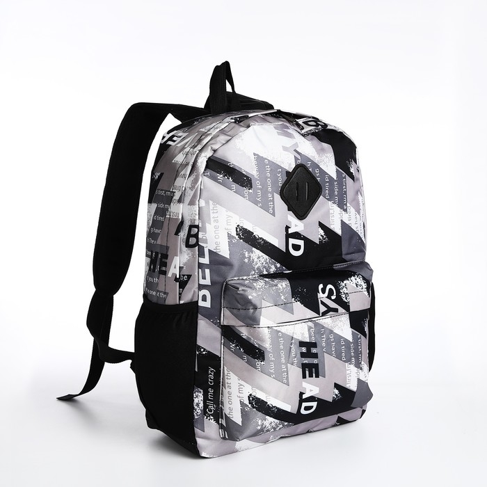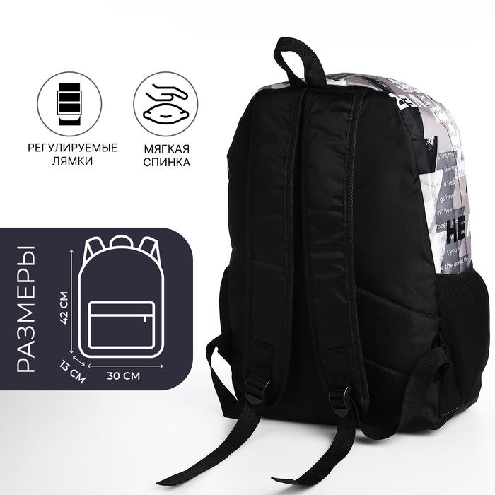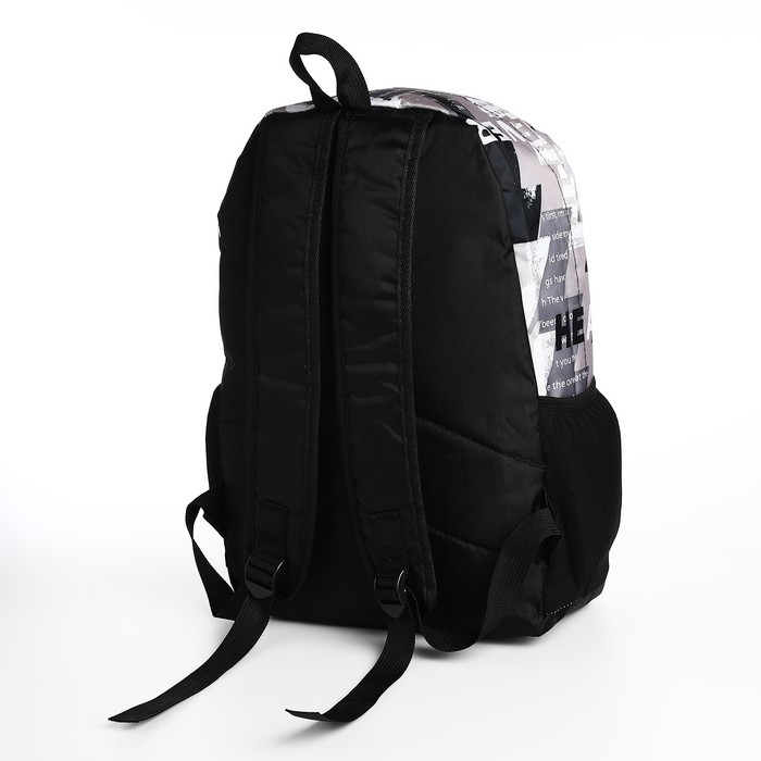 Рюкзак школьный из текстиля на молнии, 3 кармана, цвет чёрный/серый