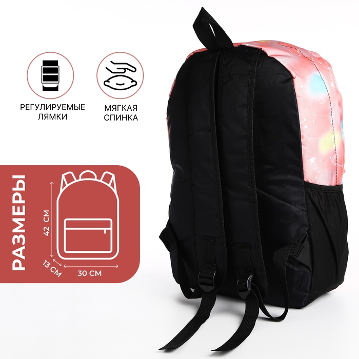 Рюкзак школьный на молнии, 3 наружных кармана, цвет розовый