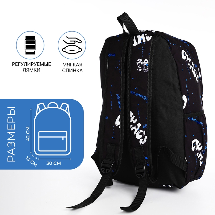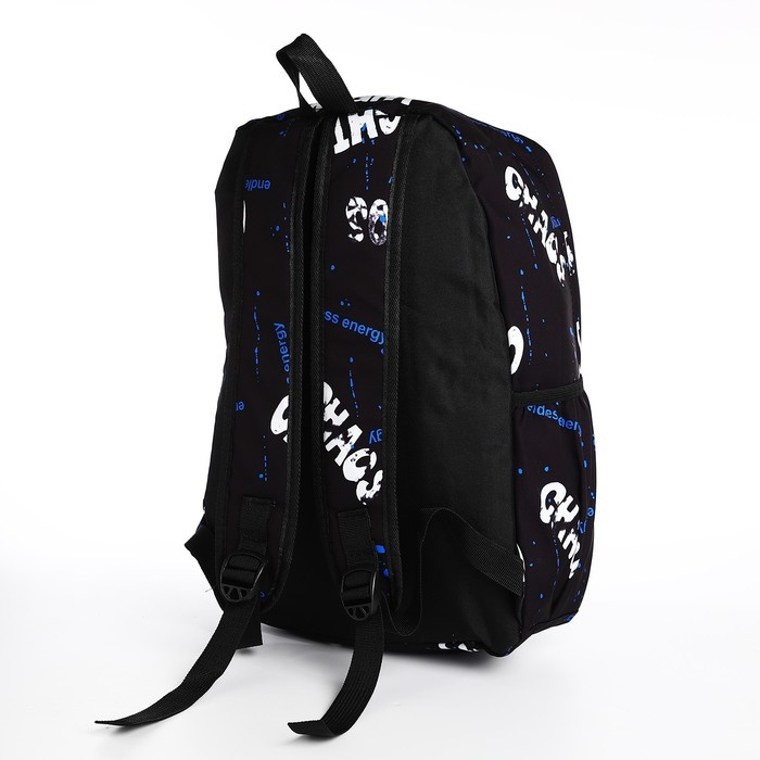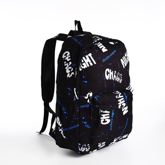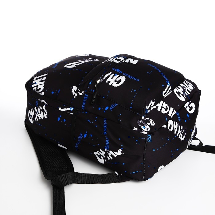 Рюкзак молодёжный из текстиля на молнии, 3 кармана, цвет чёрный/синий
