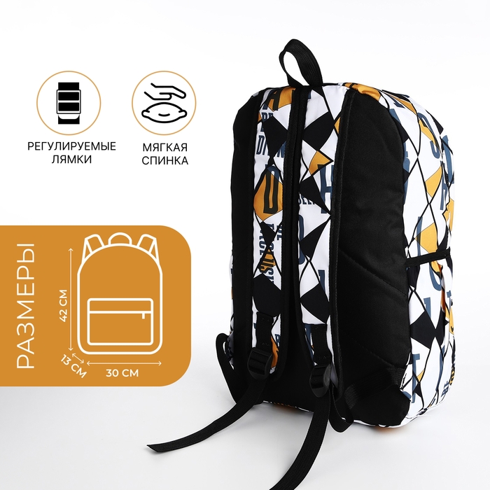 Рюкзак школьный на молнии, 3 наружных кармана, цвет чёрный/жёлтый