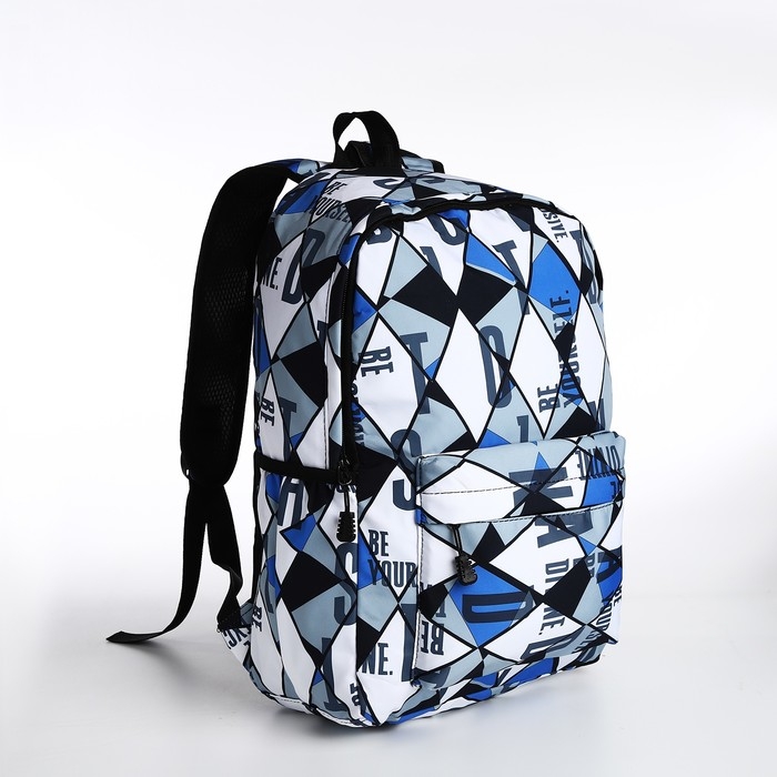 Рюкзак школьный на молнии, 3 наружных кармана, цвет чёрный/синий/серый