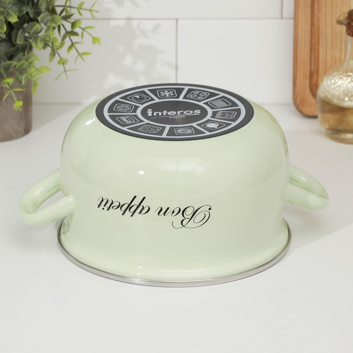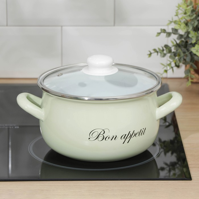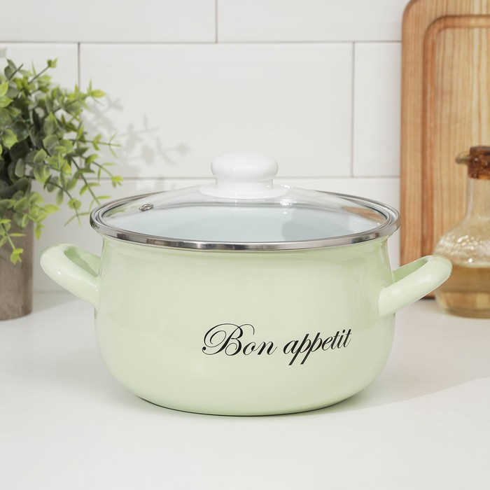 Кастрюля эмалированная «Лайм», 3.1 л, стеклянная крышка, индукция, цвет светло-зелёный