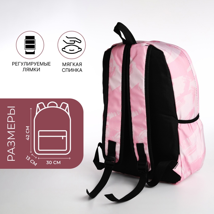 Рюкзак молодёжный из текстиля на молнии, 3 кармана, цвет розовый