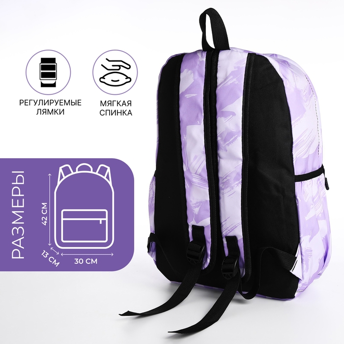 Рюкзак молодёжный из текстиля на молнии, 3 кармана, цвет сиреневый