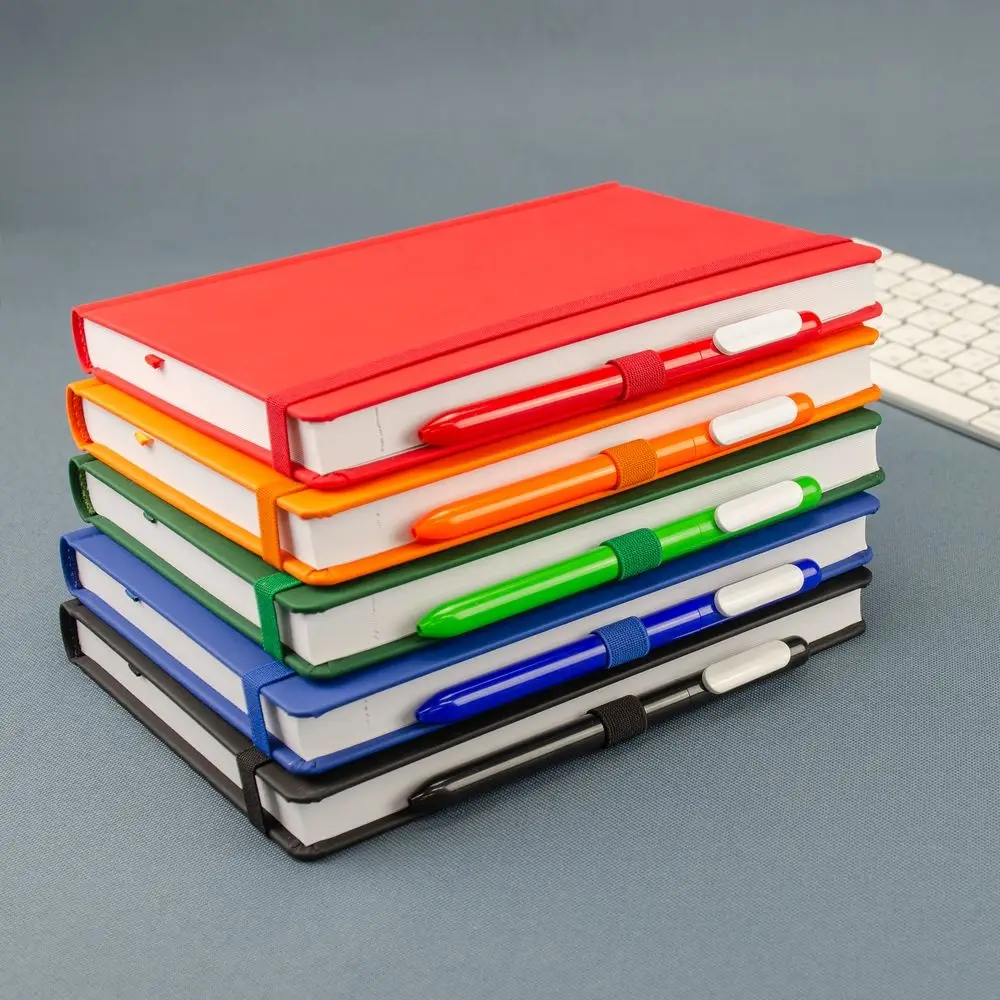 Ежедневник с твердой обложкой без поролона, выполнен из материала Soft Touch Ultra, красный РР, дополнен резинкой шириной 1 см, петлей-резинкой для ручки, капталом и ляссе красного цвета.