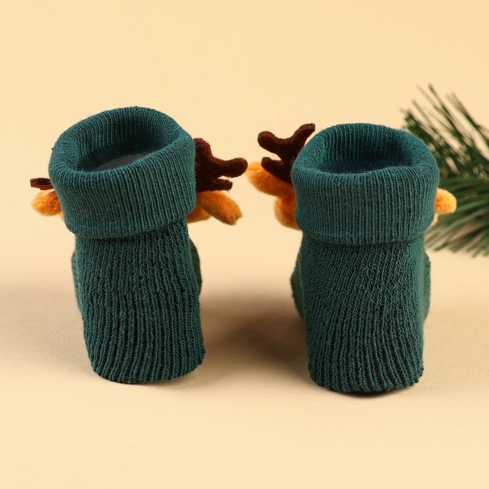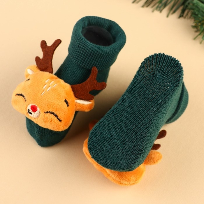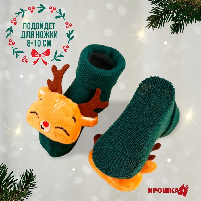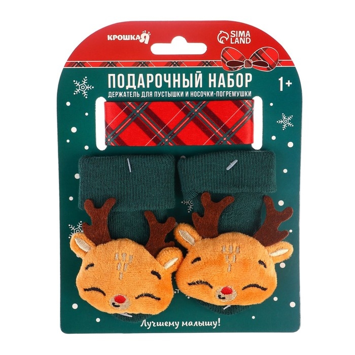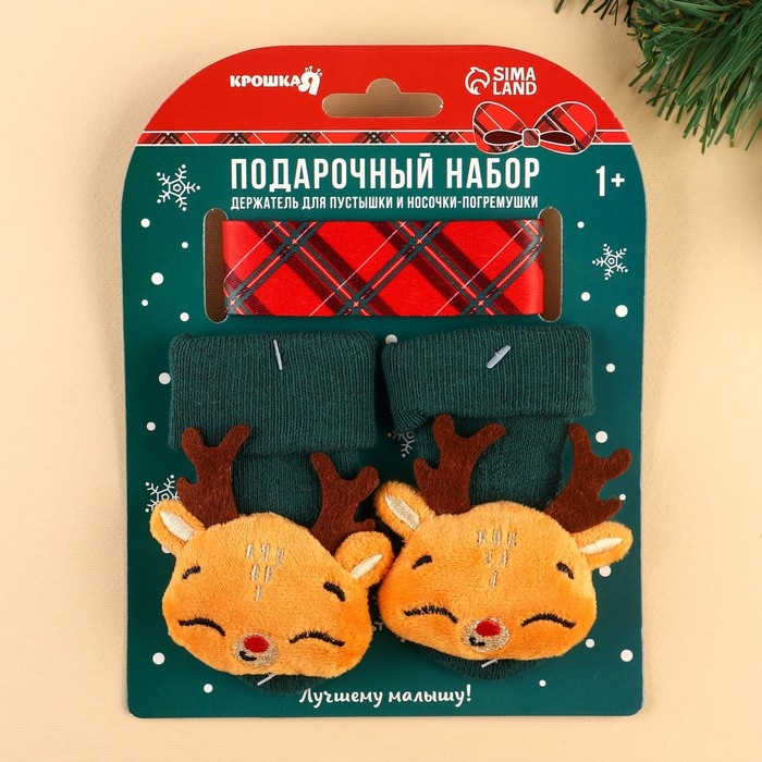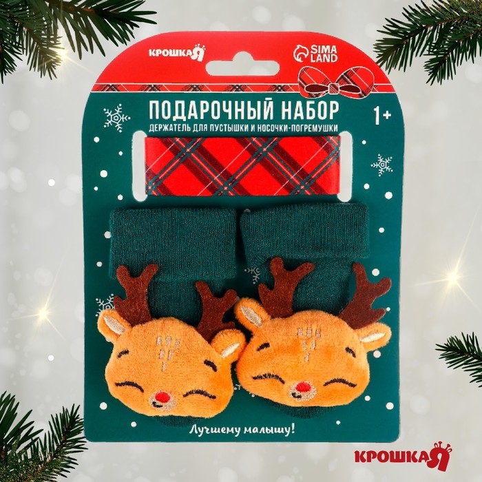 Подарочный набор новогодний: держатель для соски-пустышки на ленте и носочки - погремушки на ножки «Оленёнок», Крошка Я