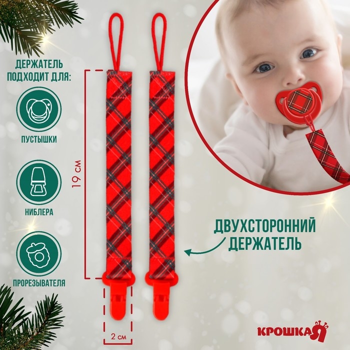 Изделие фиксируется на одежде ребёнка. На конце цепочки есть карабин, который зацепляется за кольцо пустышки. Надёжное крепление убережёт вещь от падения на пол, если малютка случайно выронит её изо рта.