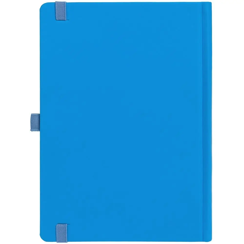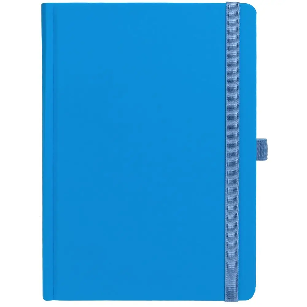 Ежедневник с твердой обложкой без поролона, выполнен из материала Soft Touch Ultra, голубой JJ, дополнен резинкой шириной 1 см, петлей-резинкой для ручки, капталом и ляссе голубого цвета.