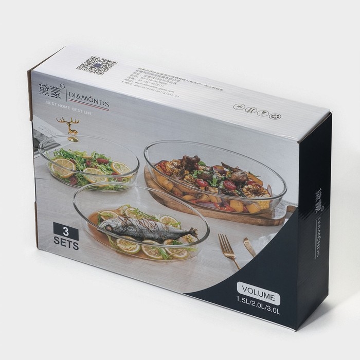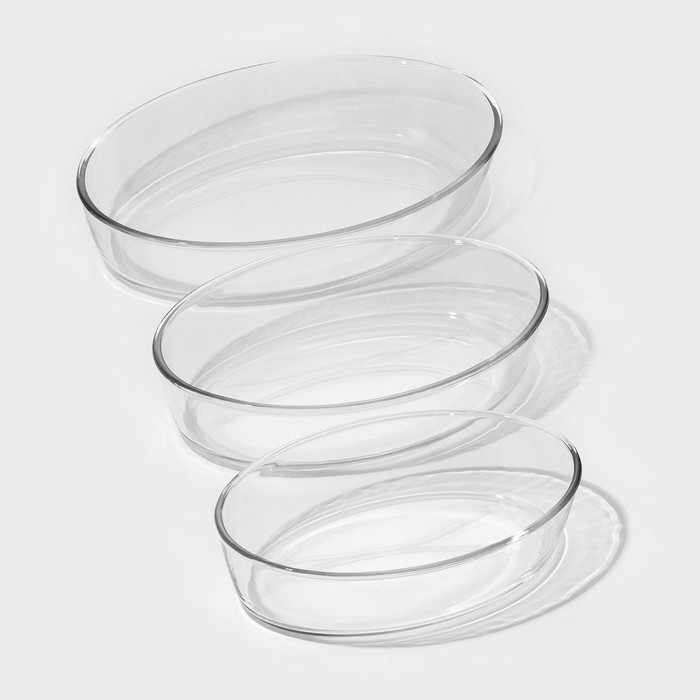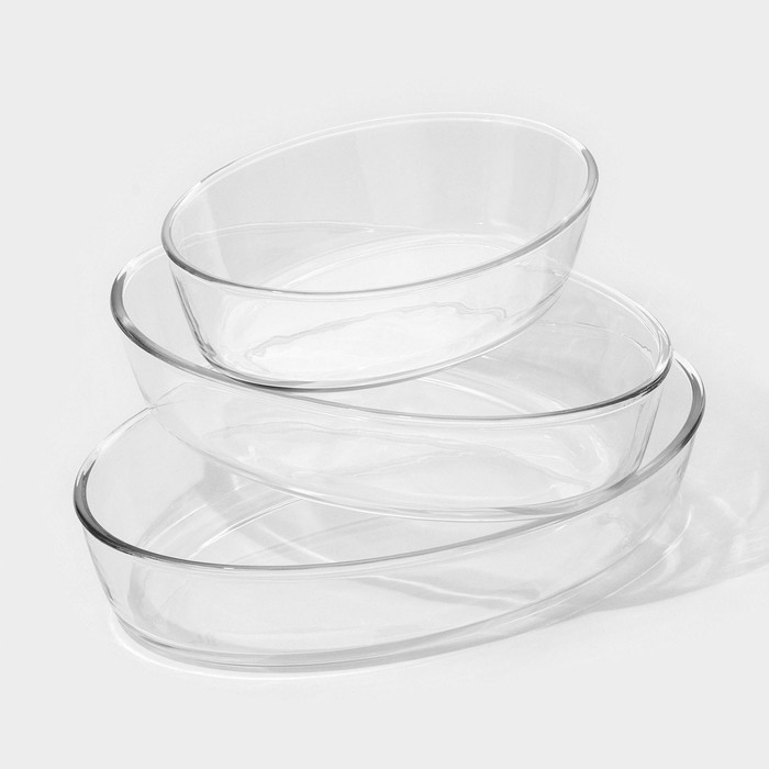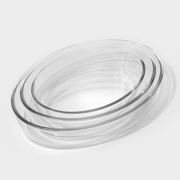Набор овальных форм для выпекания, 3 предмета: 1.5 л, 2 л, 3 л, жаропрочное стекло