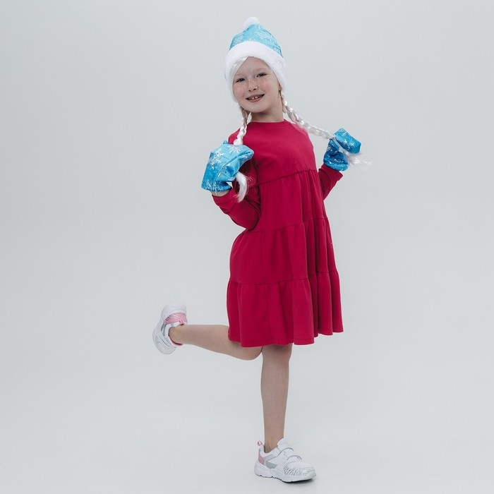 Карнавальный набор «Волшебная снегурочка»: шапка, варежки, парик с косичками, р. 56–58 см