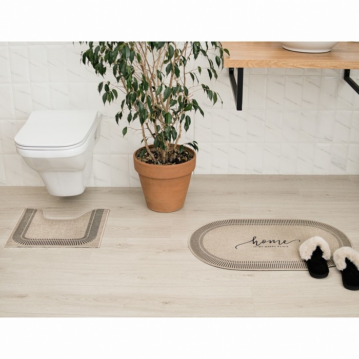 Набор ковриков для ванной Этель "Happy place" 2 шт, 48х78 см, 40х45 см