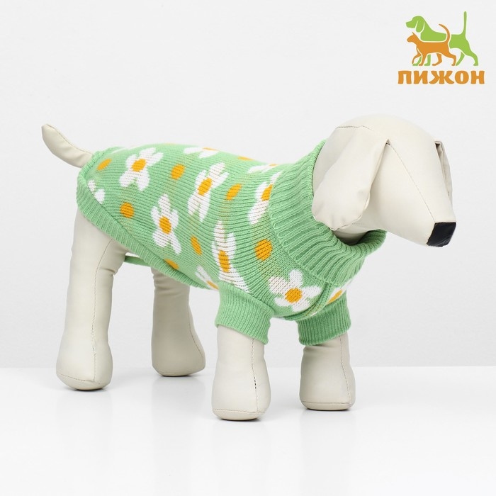 Свитер "Ромашки", размер XL (ДС 40, ОШ 33, ОГ 50 см), зелёный