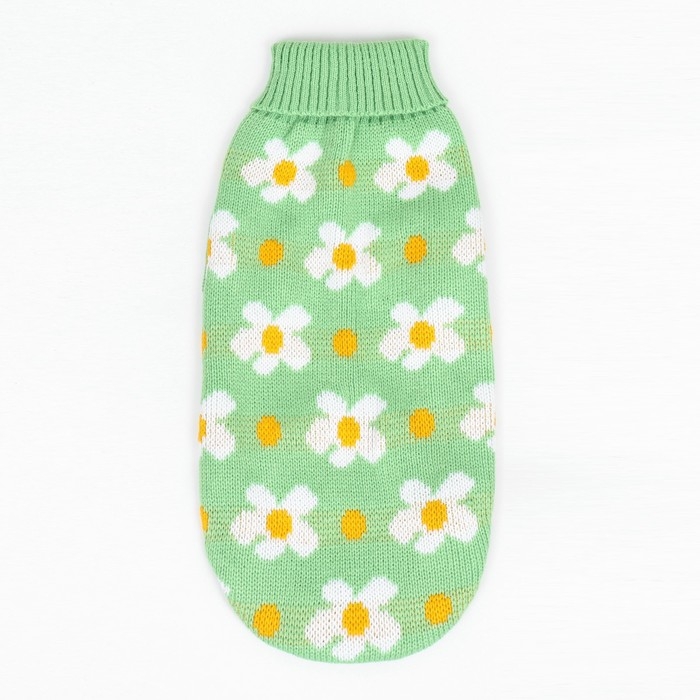 Свитер "Ромашки", размер 3XL (ДС 46, ОШ 46, ОГ 38-64 см), зелёный