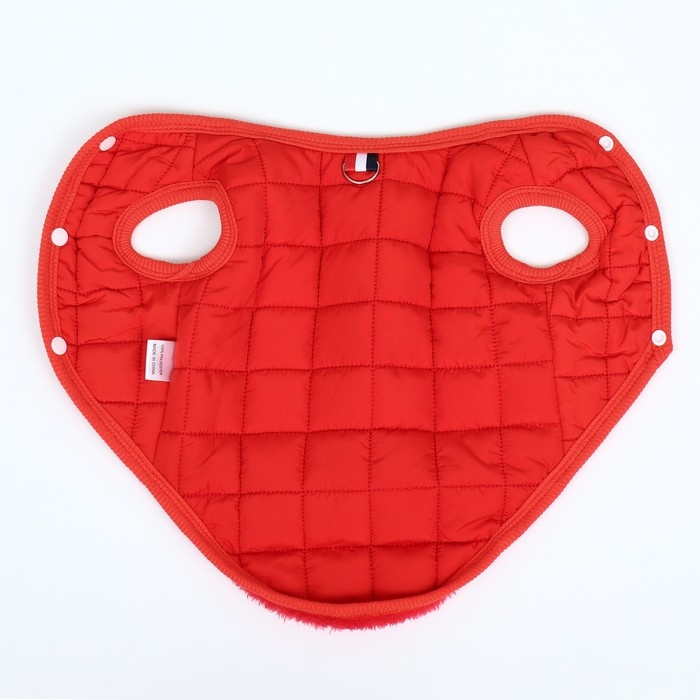 Тёплая, стёганая куртка подойдёт вашему питомцу в холодную погоду!Куртка с открытым животом пойдет, как для мальчиков, так и для девочек. Не сковывает движений, надежно защищает от грязи, дождя и ветра.Представлена в ярко красной расцветке. Куртка застегивается кнопками на животе, что позволяет легко надевать и снимать. Внутри имеется тёплый подклад.На спине куртки имеется кольцо для поводка, что облегчит подготовку к прогулкам.Позаботьтесь о своем любимце - это куртка обеспечит вашего любимца комфортом и теплом в плохую погоду.