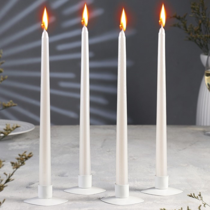 Набор Свечей античных, 2,2х 30 см, 4 штук, перламутровый металлик