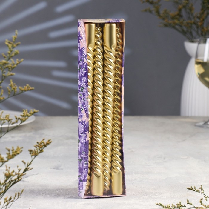 Набор Свечей витых, 2,2х 30 см, 4 штук, золотой металлик