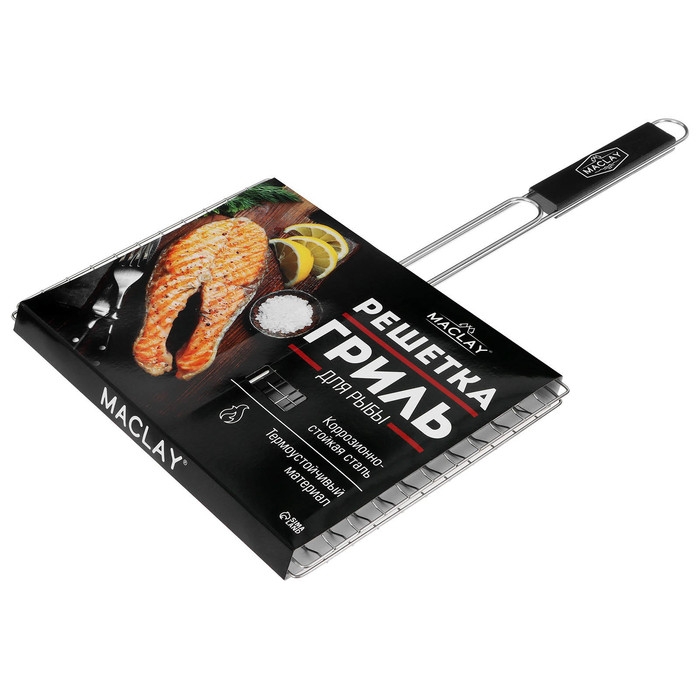 Решётка-гриль Maclay предназначена для приготовления рыбы на мангале. Рабочая поверхность имеет увеличенный размер, на неё помещается сразу несколько кусочков рыбы. Решётка выполнена из прочной нержавеющей стали, что обеспечивает долгий срок эксплуатации.