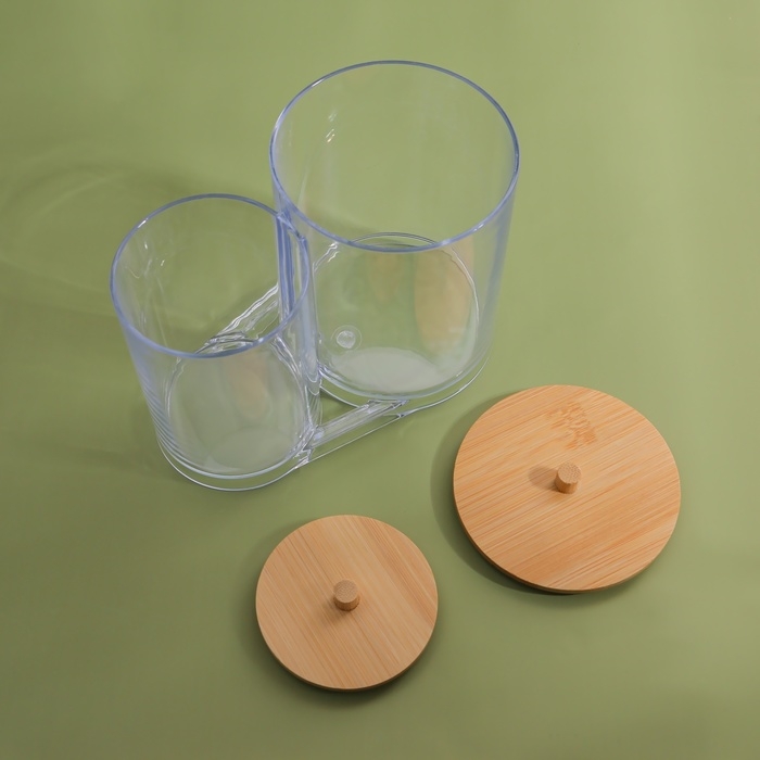 Органайзер для хранения ватных палочек «BAMBOO», с крышкой, d = 9,5 × 9,7 см, в картонной коробке, цвет прозрачный/коричневый