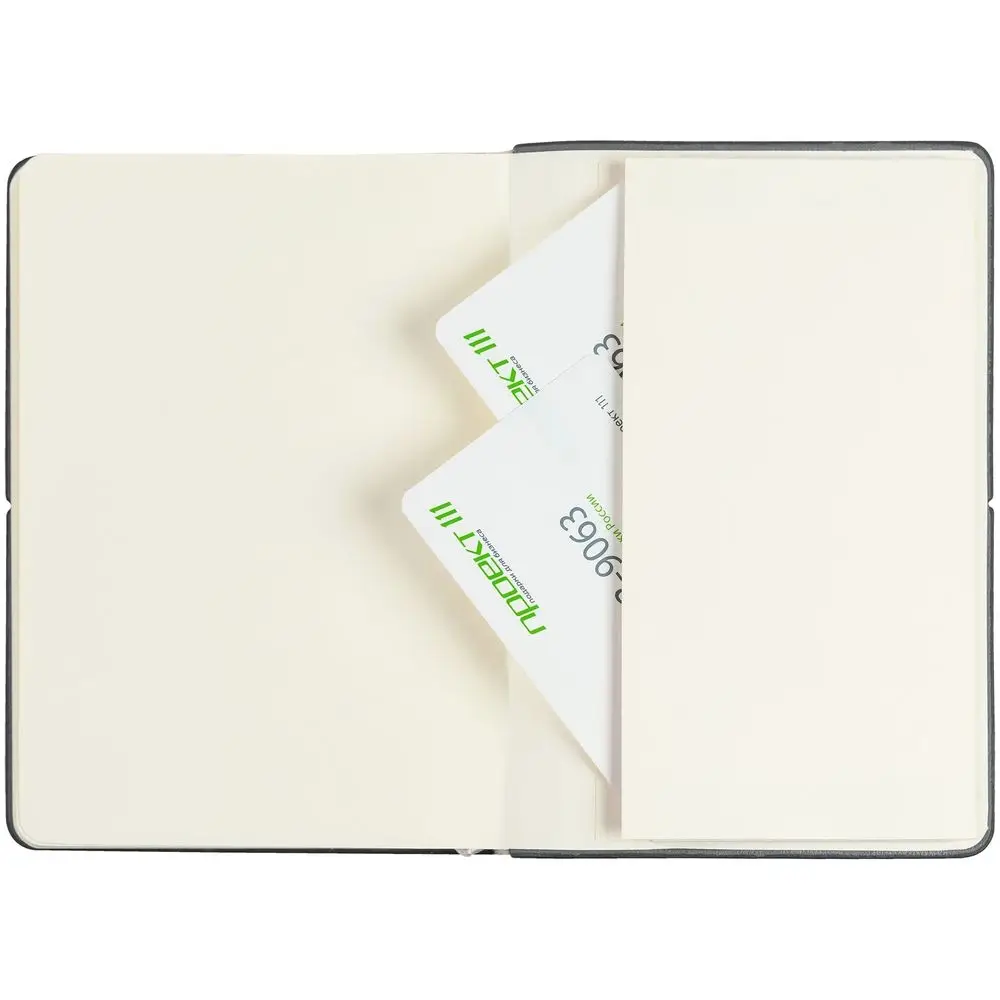 Поставляется в индивидуальном полиэтиленовом пакете и с картонными вкладышами, отделяющими обложку от резинки.