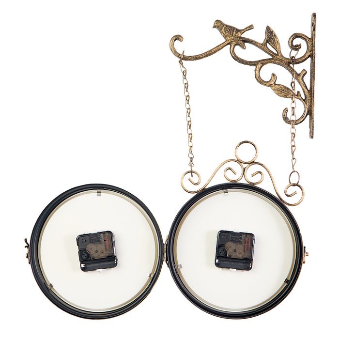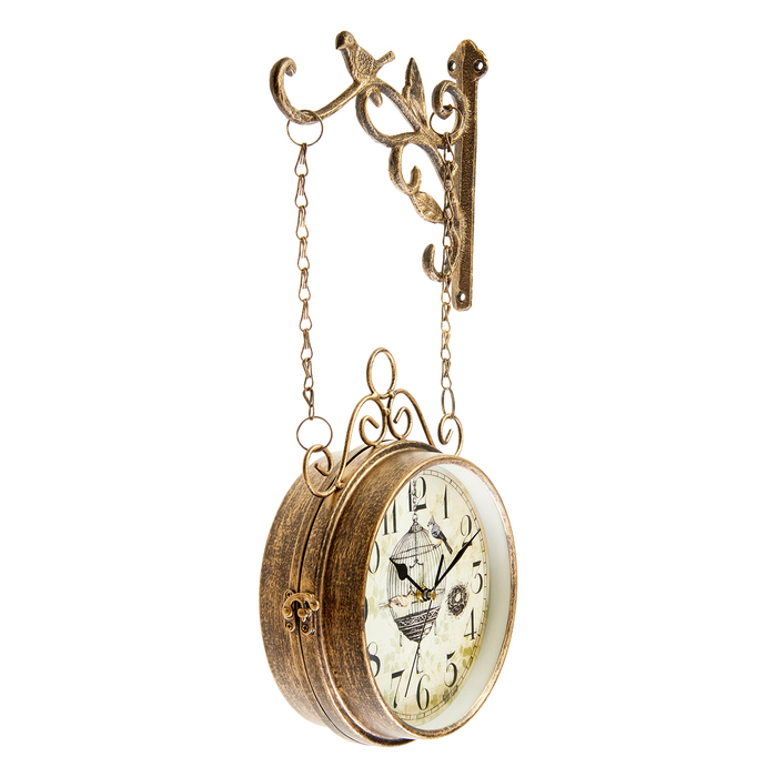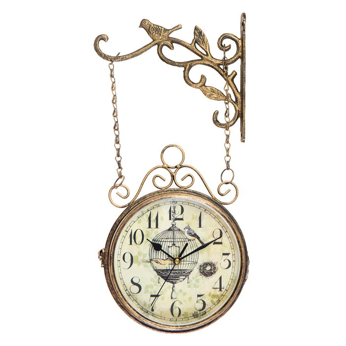 Часы настенные двусторонние, на подвесе "Птичка в клетке", плавный ход, d-17 см, 23 х 44 см