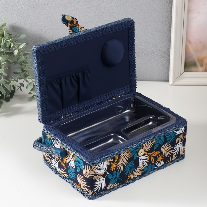 Шкатулка для рукоделия "Лесные веточки на синем" 24х16х11 см