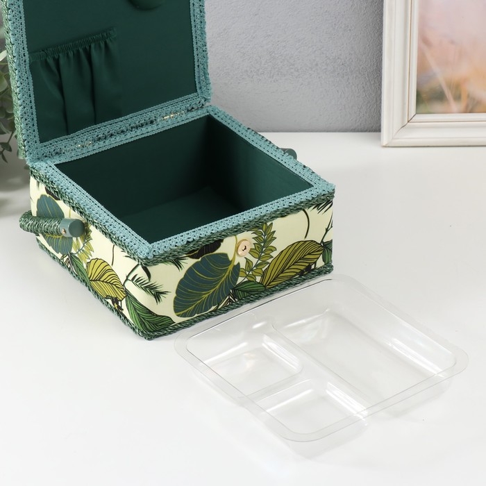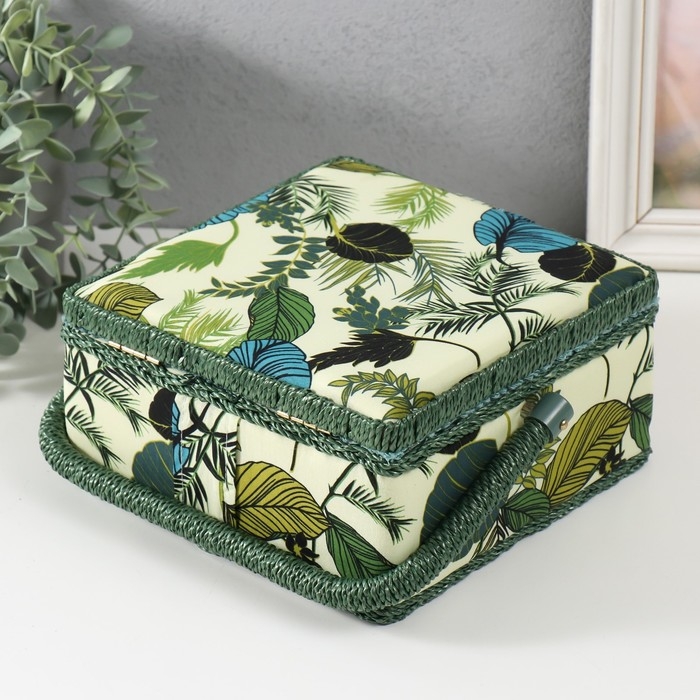 Шкатулка для рукоделия "Тропические листья на зелёном" 20х20х11 см