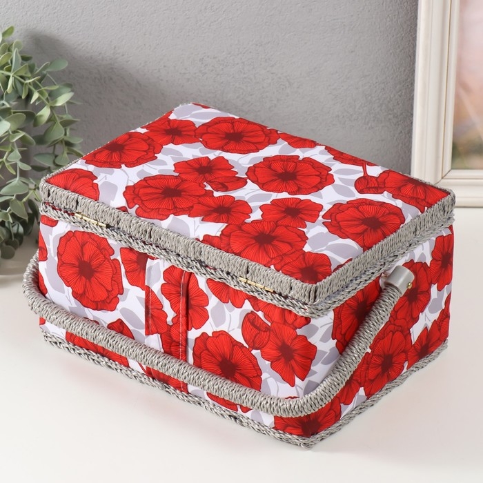 Шкатулка для рукоделия "Красные маки на белом" 19х26х14,5 см