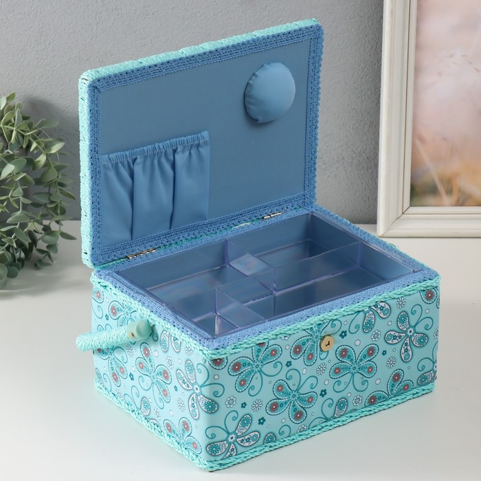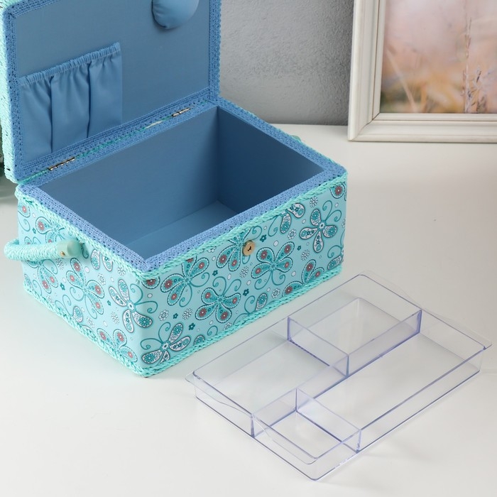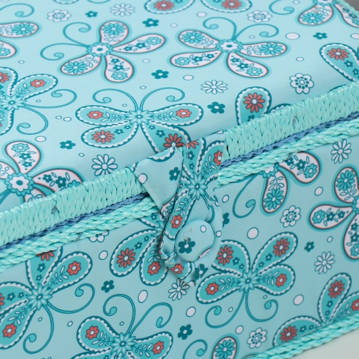 Шкатулка для рукоделия "Бабочки и цветочки на голубом" 19х26х14,5 см