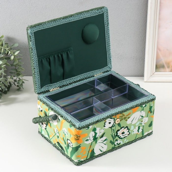 Шкатулка для рукоделия "Летние цветы на зелёном" 19х26х14,5 см