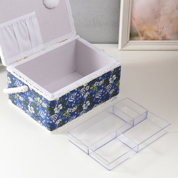 Шкатулка для рукоделия "Полевые цветы на синем" 19х26х14,5 см
