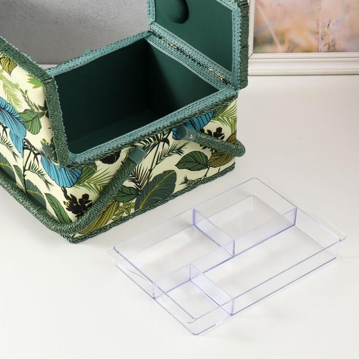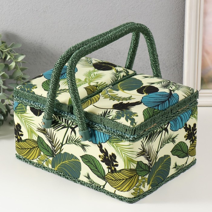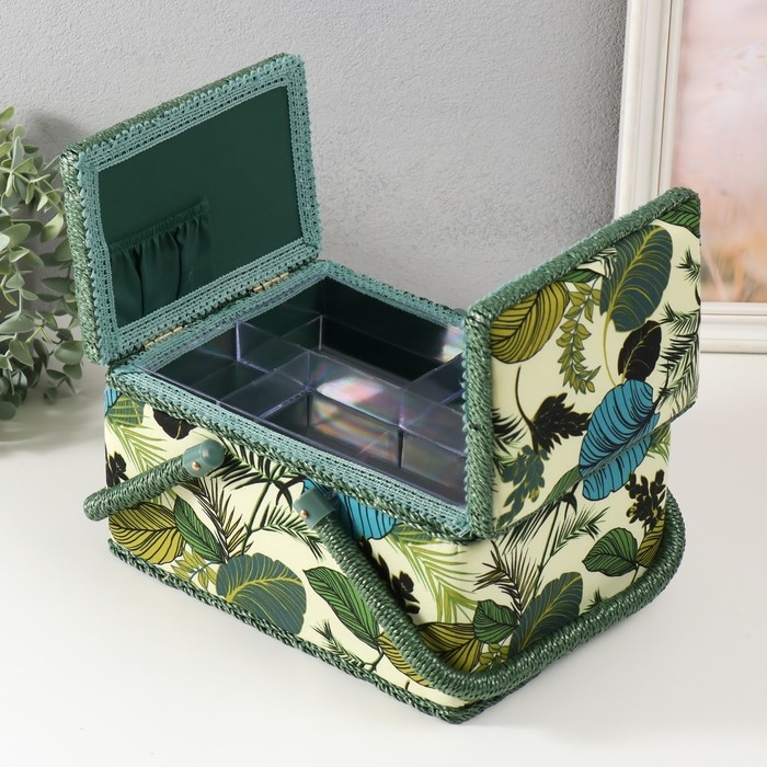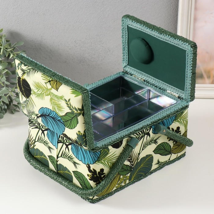Шкатулка для рукоделия "Тропические листья на зелёном" 19х26х14,5 см